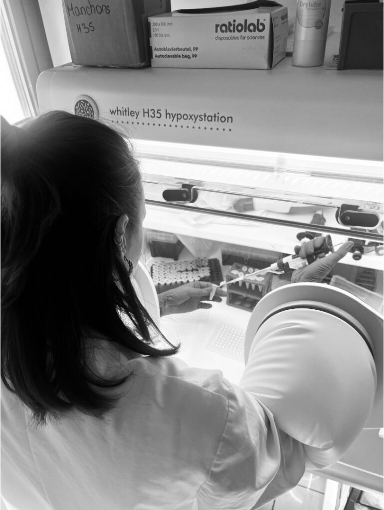 🔬Jean-Paul Motta and Mélissa Pannier from Institut de Recherche en Santé Digestive (Inserm) working on the impact of antimicrobial peptides secreted by human intestinal organoids on human microbiome biofilms.